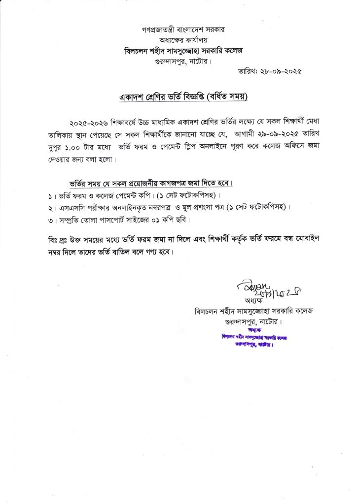 বিজ্ঞপ্তি- একাদশ শ্রেণির ভর্তি সংক্রান্ত