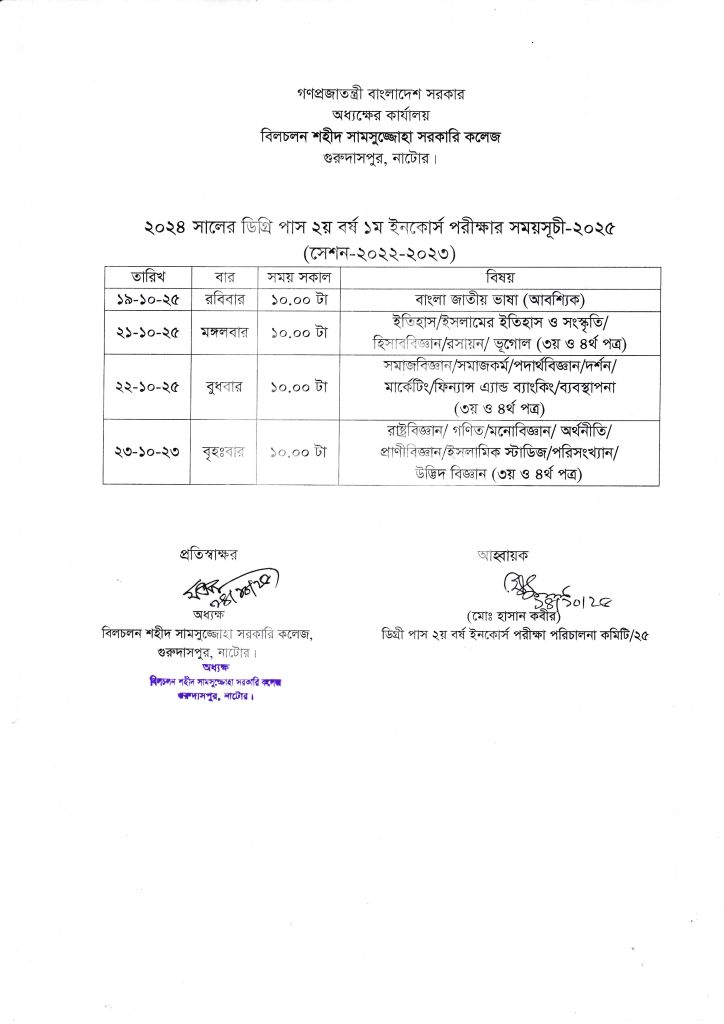 বিজ্ঞপ্তি- ডিগ্রী ২য় বর্ষের ইনকোর্স পরীক্ষার সময়সূচী