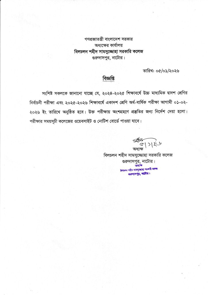 Home/Notice/উচ্চ মাধ্যমিক দ্বাদশ ও একাদশ শ্রেণির নির্বাচনী ও অর্ধ-বার্ষিক পরীক্ষা সংক্রান্ত