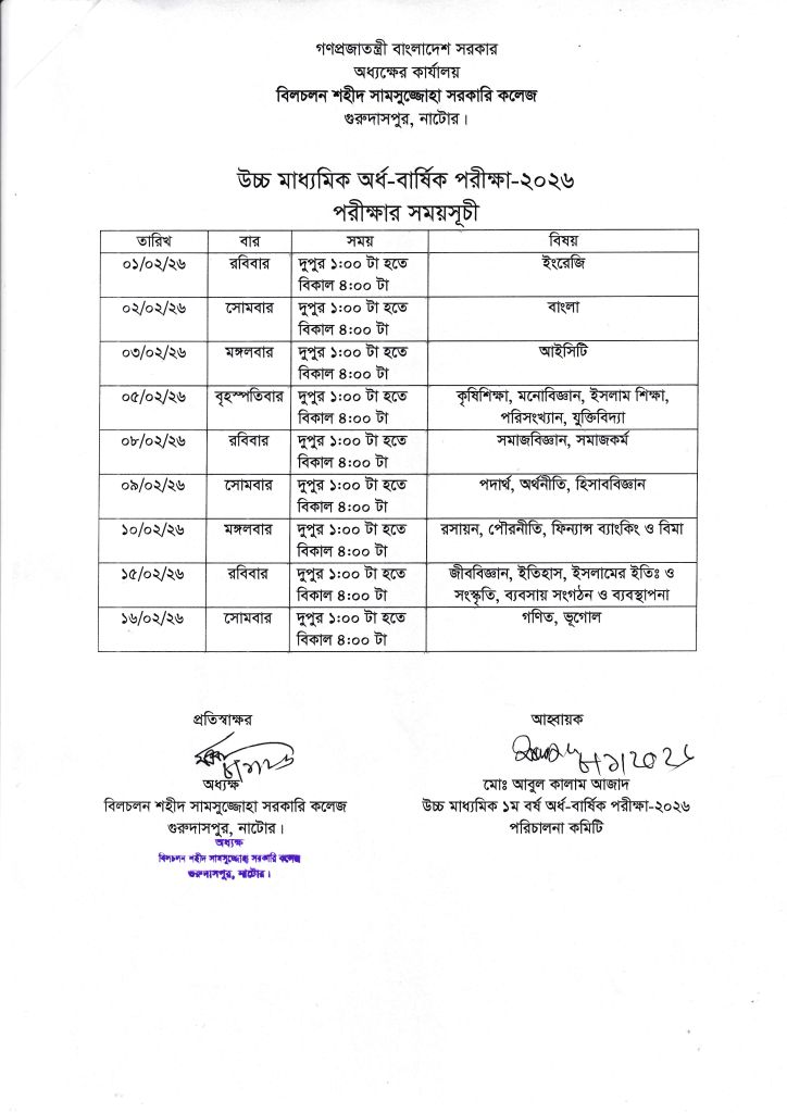 উচ্চ মাধ্যমিক অর্ধ-বার্ষিক পরীক্ষার রুটিন