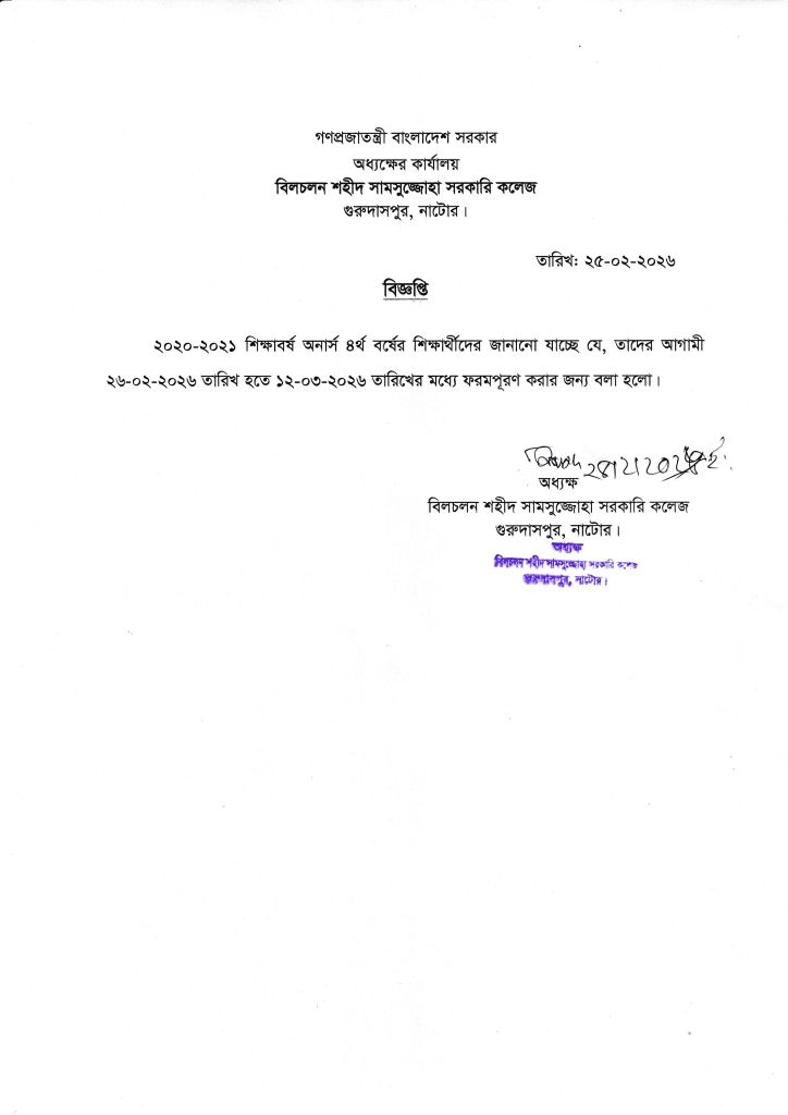 বিজ্ঞপ্তি- অনার্স ৪র্থ বর্ষ ফরমপূরণ সংক্রান্ত