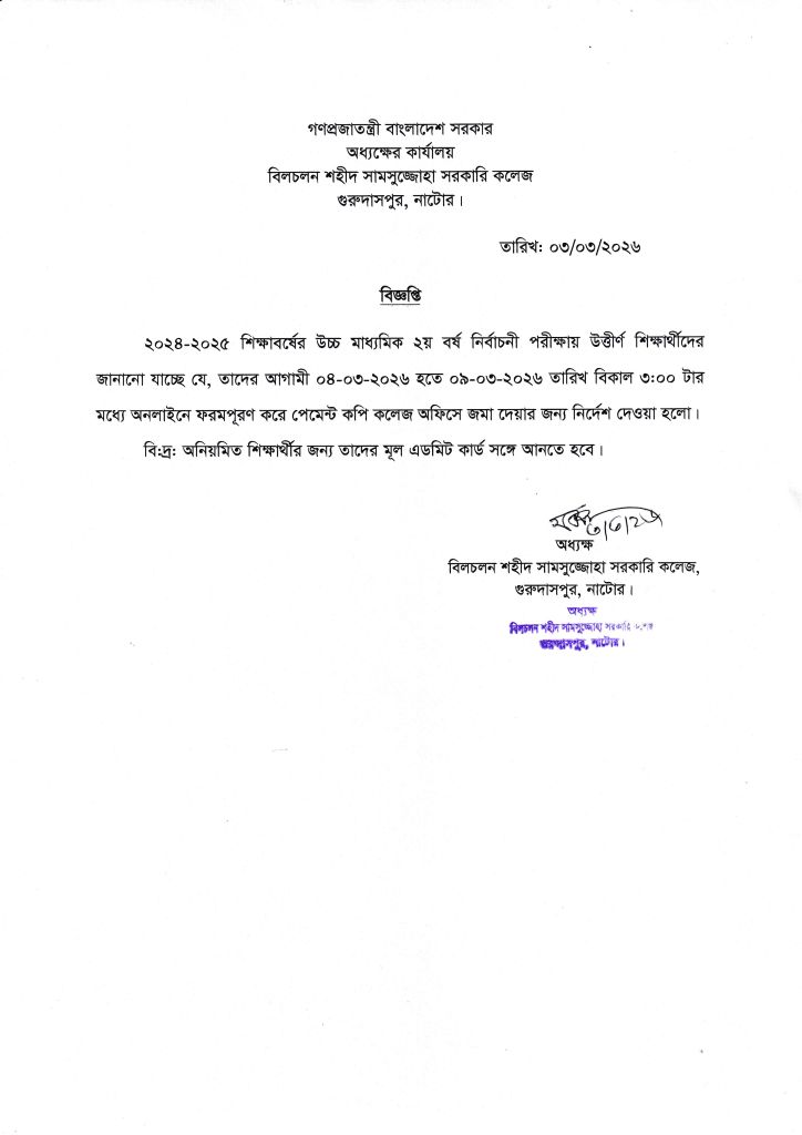 বিজ্ঞপ্তি- উচ্চ মাধ্যমিক ফরমপূরণ সংক্রান্ত