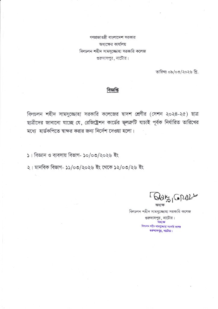 • বিজ্ঞপ্তি- রেজিষ্ট্রেশন সংক্রান্ত March 9, 2026