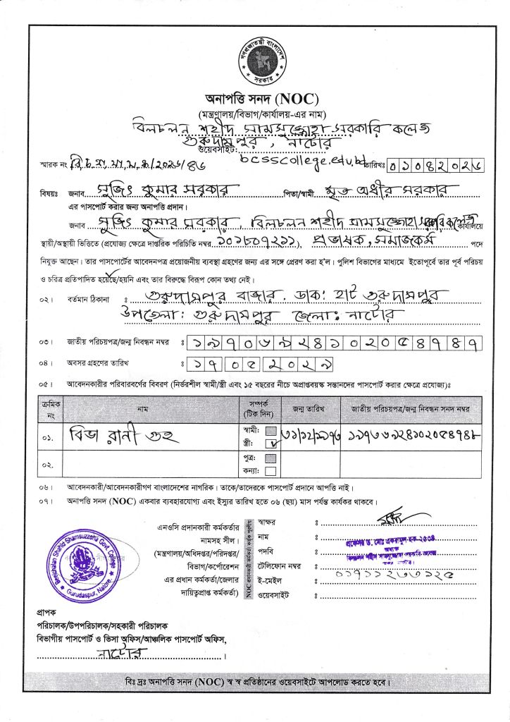 NOC- মিঃ সুজিৎ কুমার সরকার