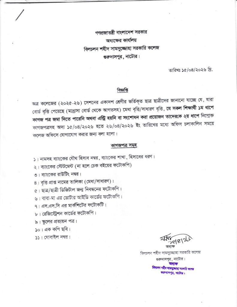 বিজ্ঞপ্তি- বোর্ড বৃত্তি সংক্রান্ত